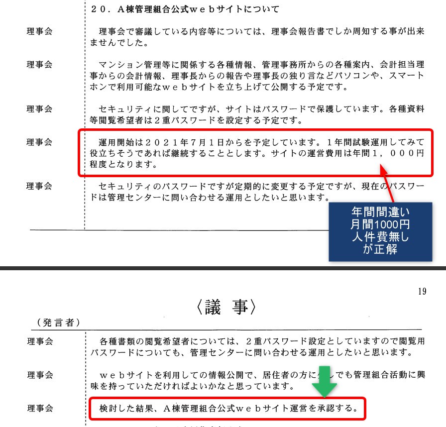 2021年06月20日の理事会議事録から公式webサイト承認部分