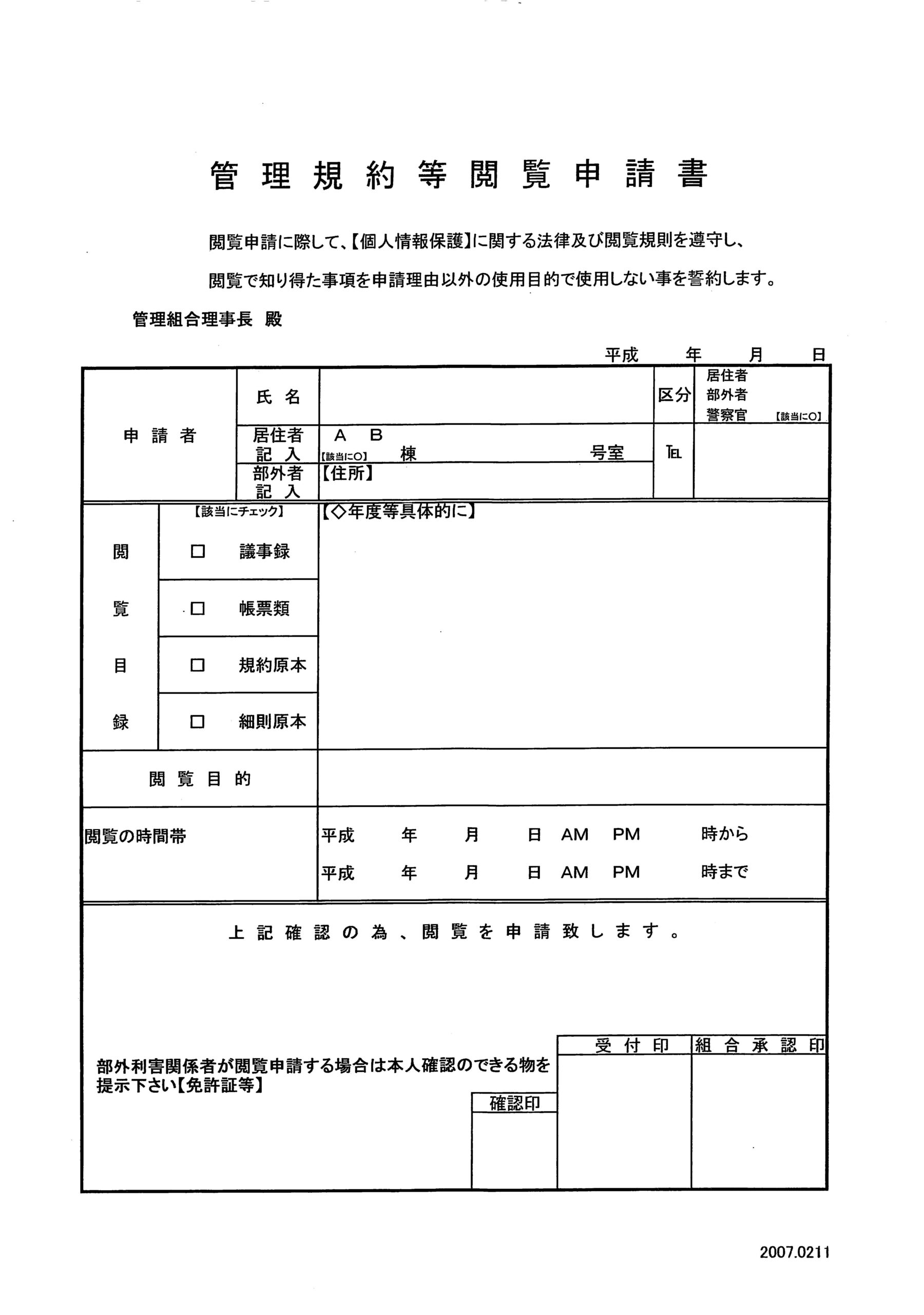 保護パスワード付き資料の閲覧申請書