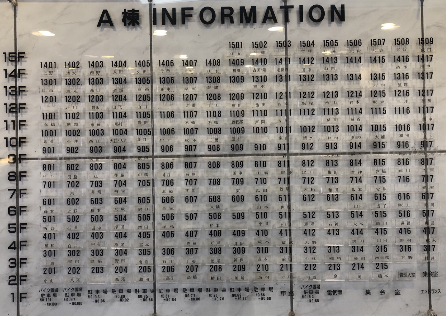A棟は228戸あるのですが、1階エントランスの案内板には