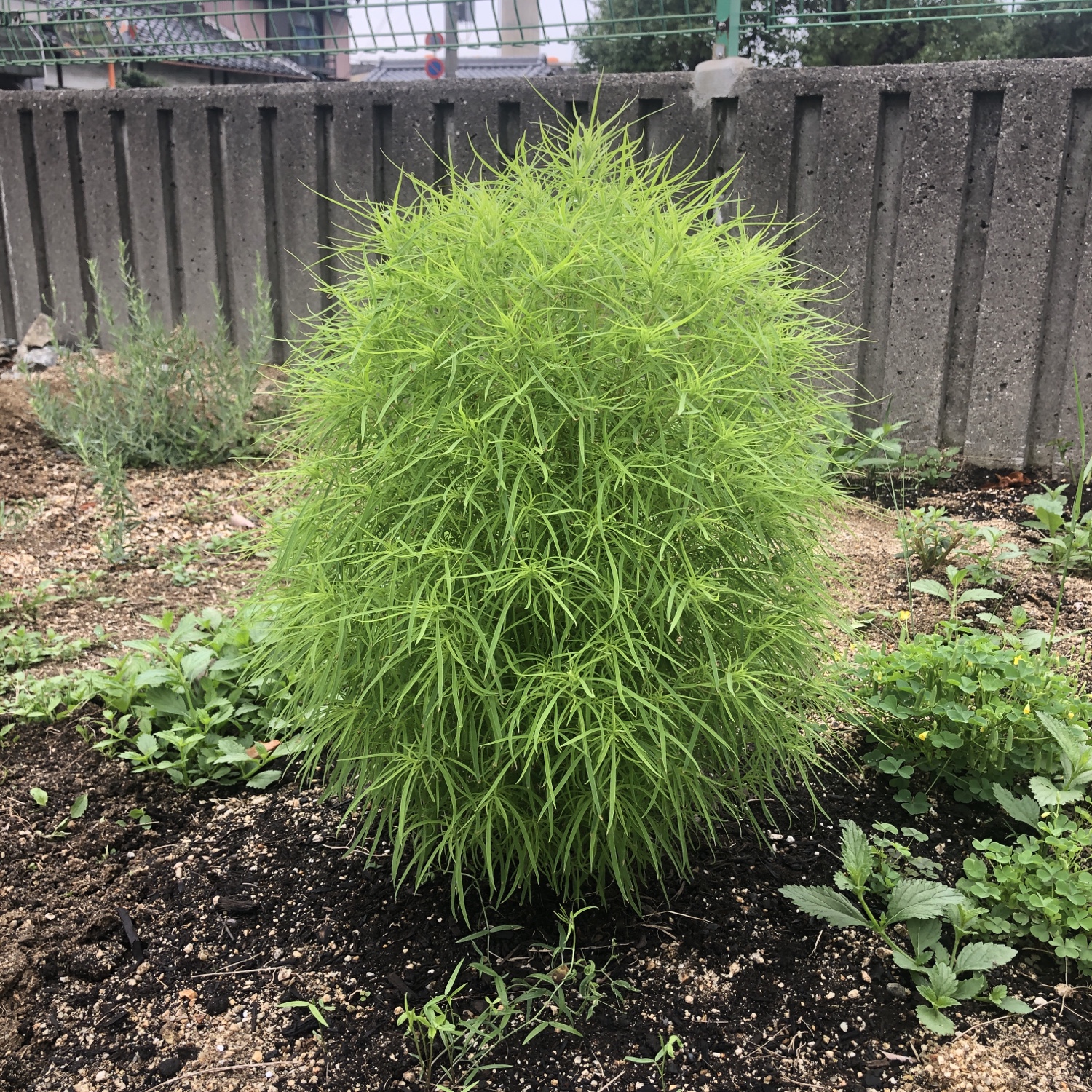 この草です、これはコキアっという、日本語では「ほうき草」かな
