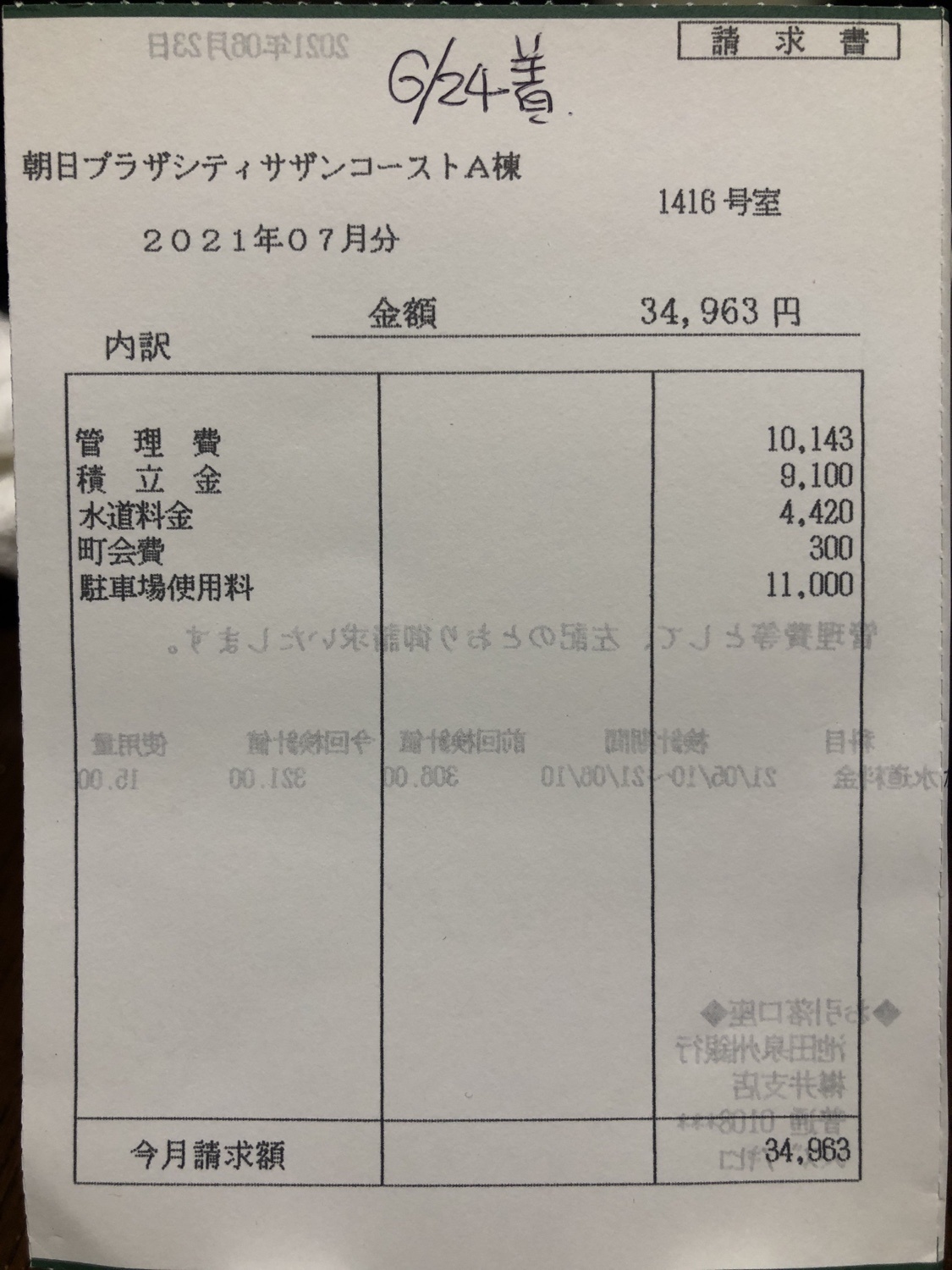 今月は24日に届いてましたが、毎月届く請求ハガキ