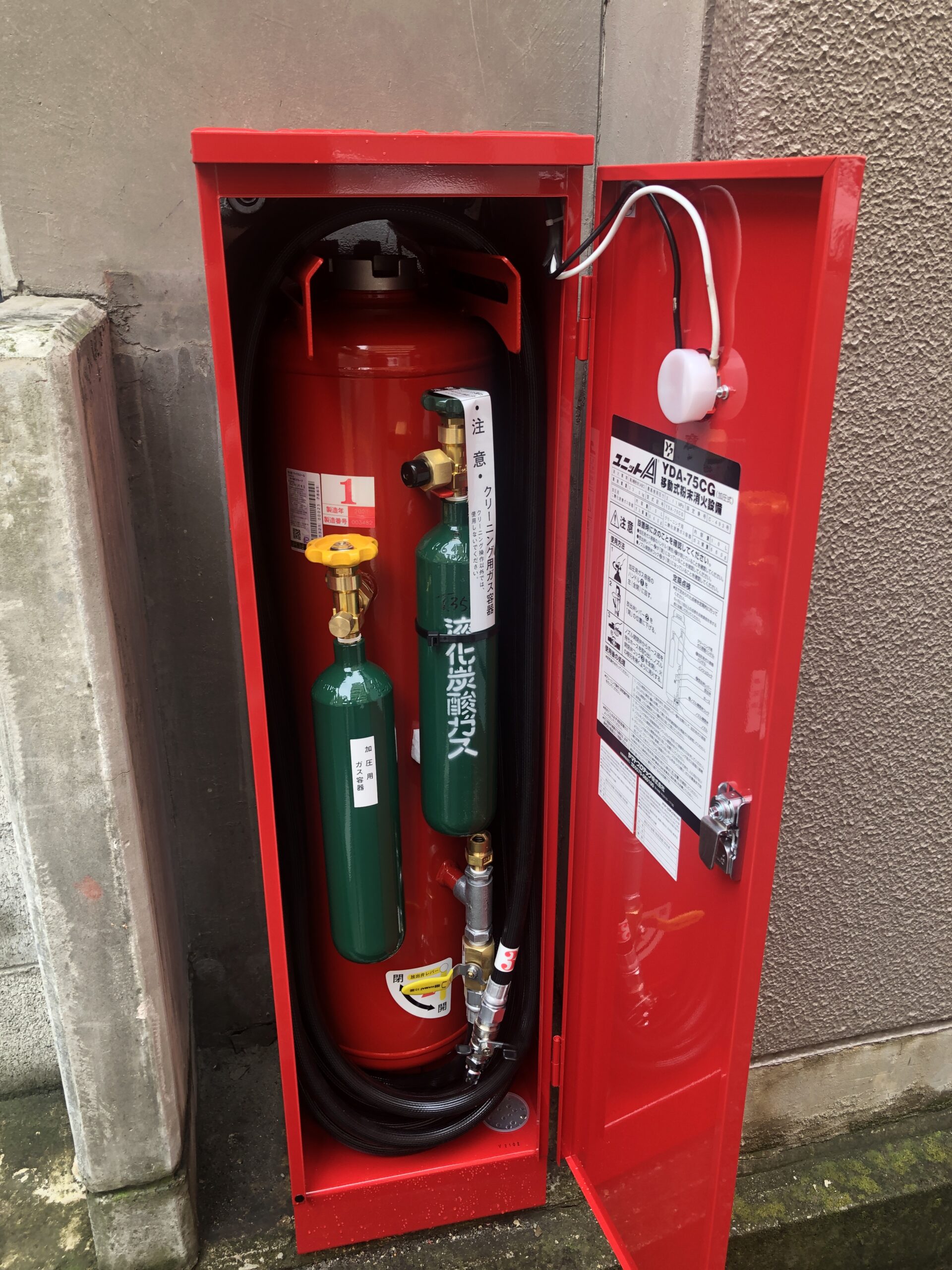 古い消火器 これを入れ替え作業しました。消火設備の寿命