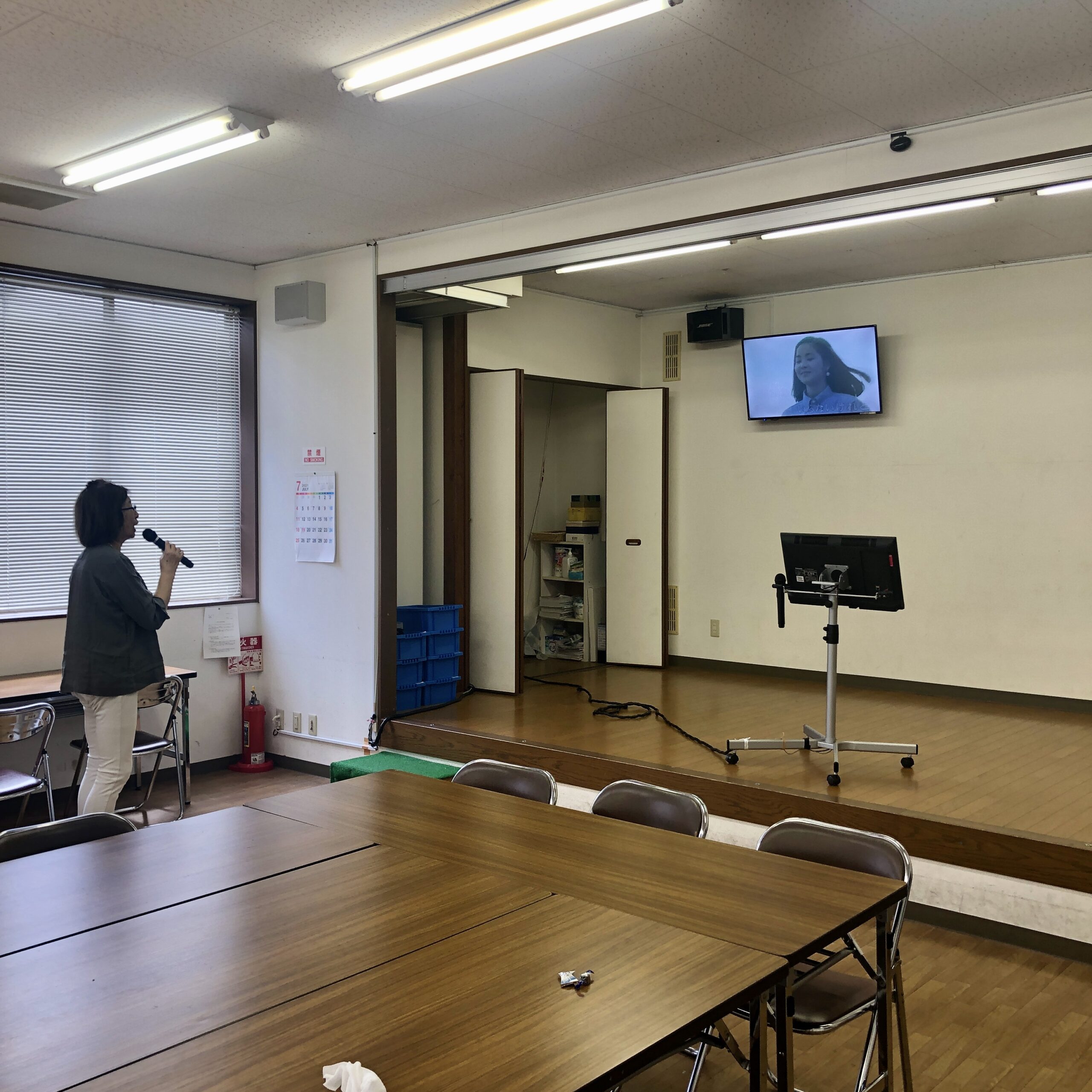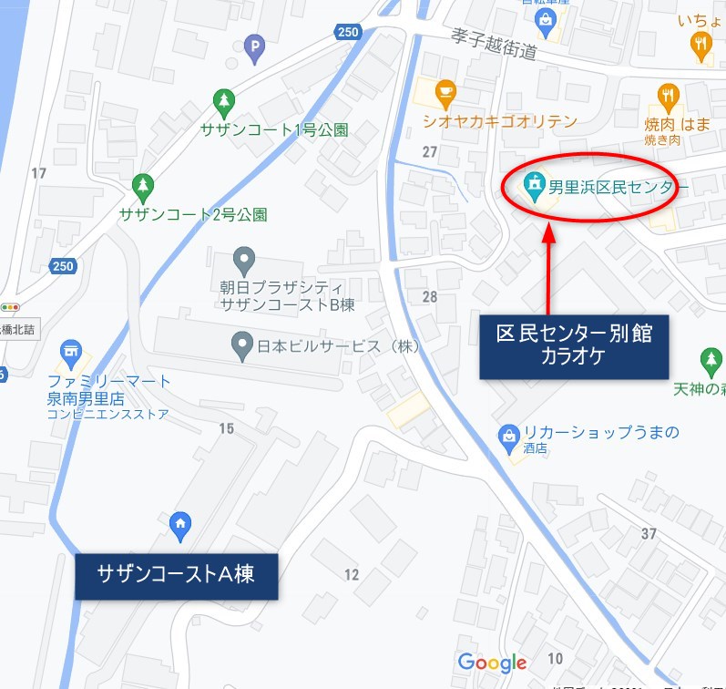 男里浜区の区民センター別館にあるカラオケ設備を使って、歌ってます。