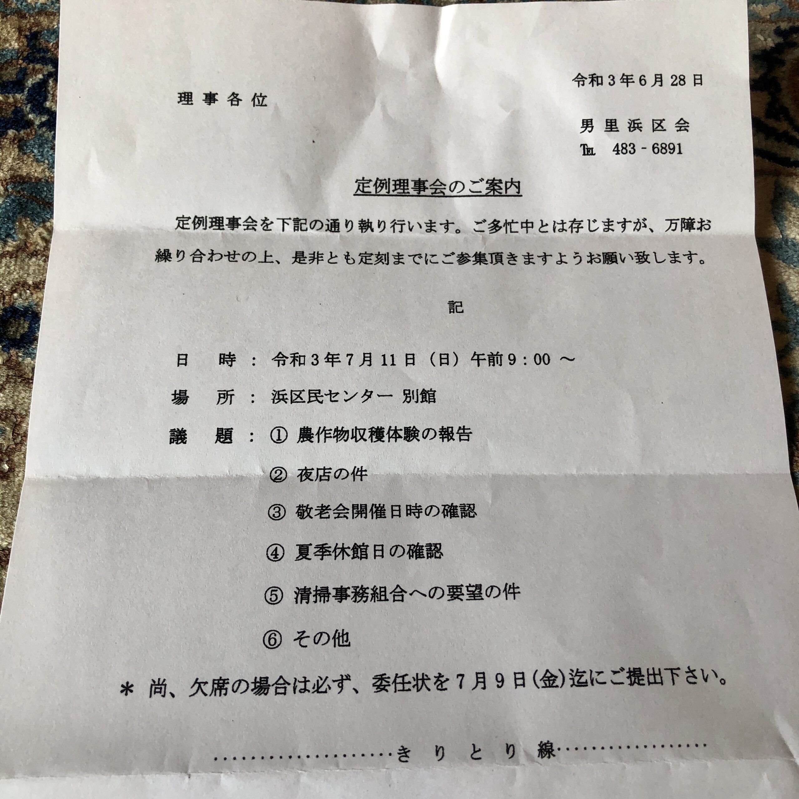 ええ 今度は あさっての日曜日 7月11日 定例理事会あります