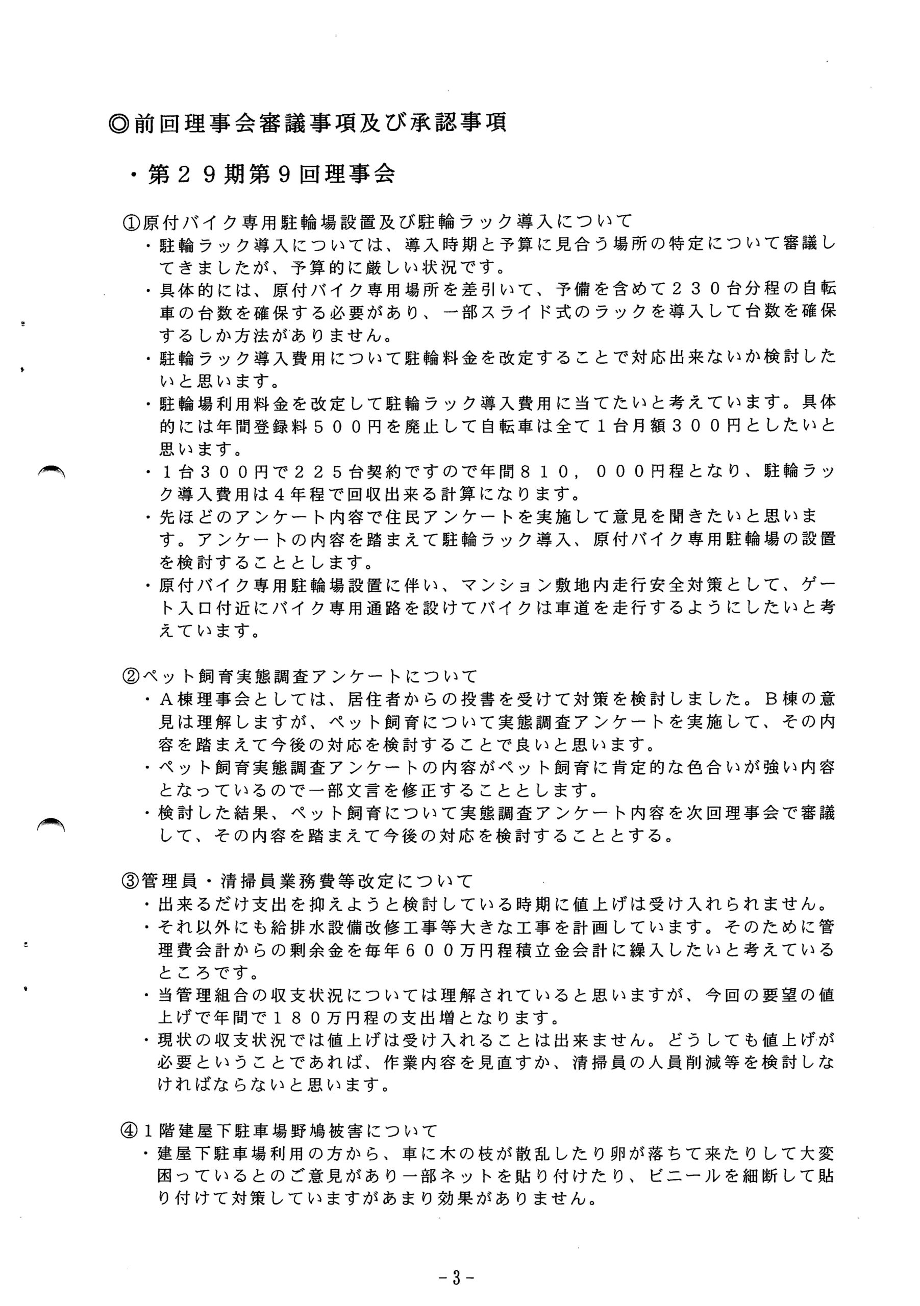 で まず最初にですね 前回の理事会でどんなことを話したか