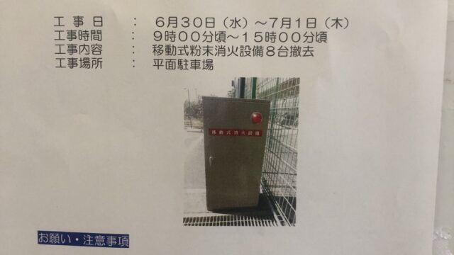 6月30日〜7月1日 消火設備🧯の工事予定ご注意ください
