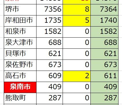 新型コロナ感染状況 堺市以南 2021年7月1日